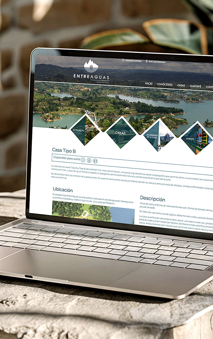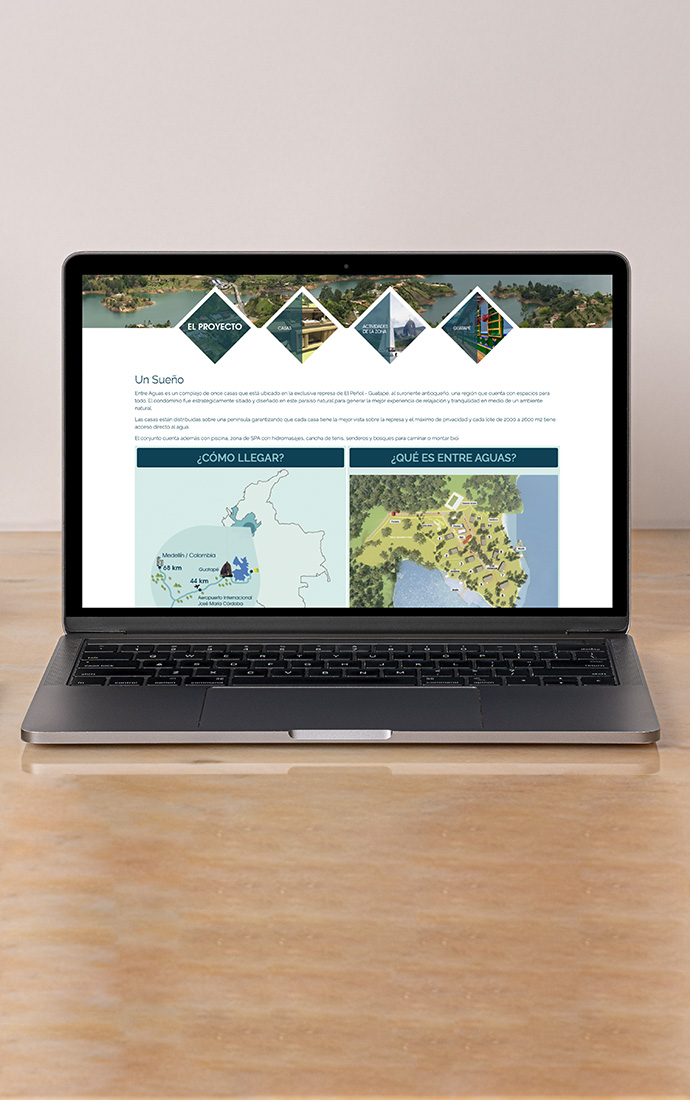 Desarrollamos la identidad visual de Condominio EntreAguas a partir de un logo elegante y sereno que refleja su entorno natural y estilo de vida. El proyecto incluyó el diseño y desarrollo de su página web, desde la conceptualización visual hasta su implementación, creando una experiencia digital clara y funcional que comunica confianza, exclusividad y conexión con el entorno.