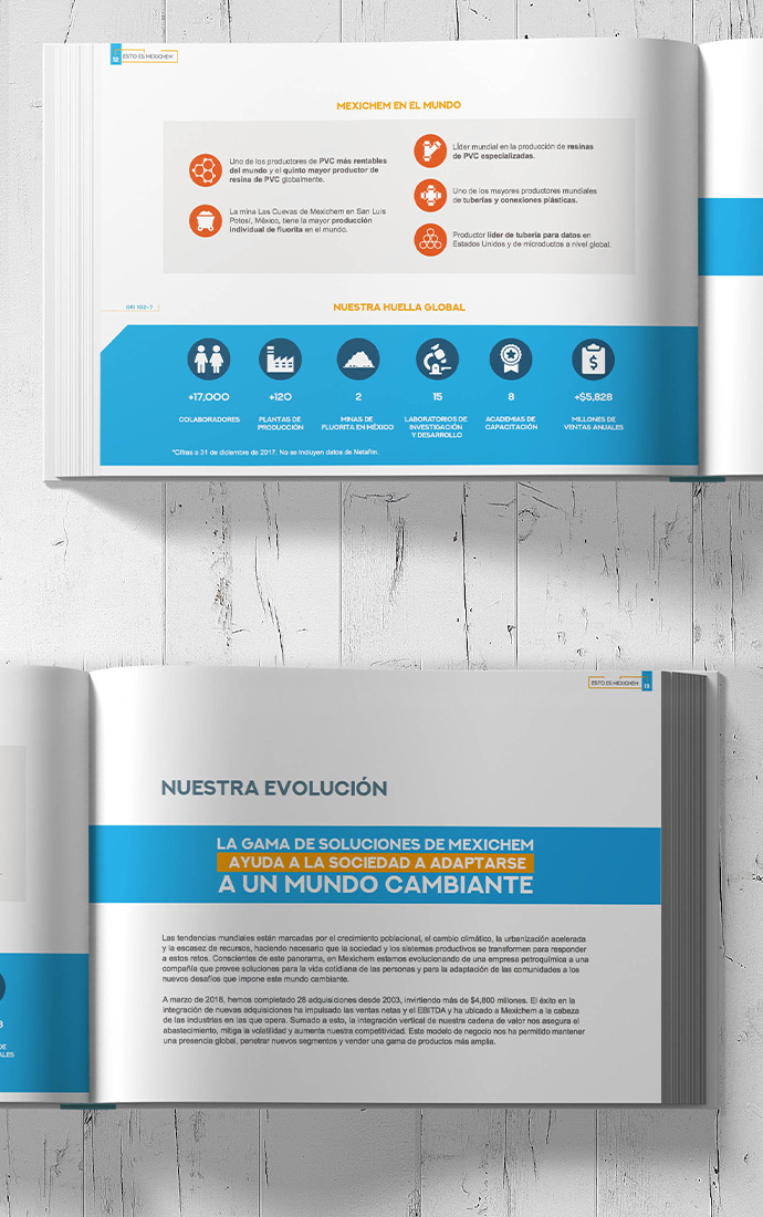 Diseñamos el informe financiero y de sustentabilidad de Mexichem, desarrollando una propuesta editorial clara, estructurada y alineada con su identidad corporativa. El resultado facilita la comprensión de la información y comunica de manera efectiva el desempeño financiero y los compromisos de sostenibilidad de la organización.